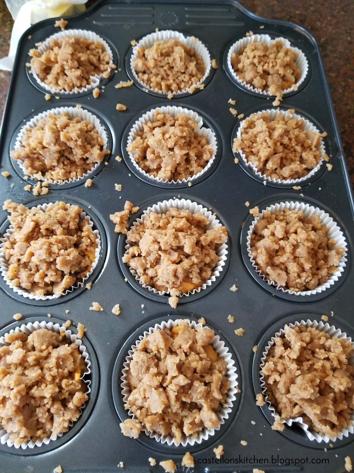 Using a large cookie scoop, scoop mixture into muffin liners or prepared muffin pan. Sprinkle generously over muffin batter.